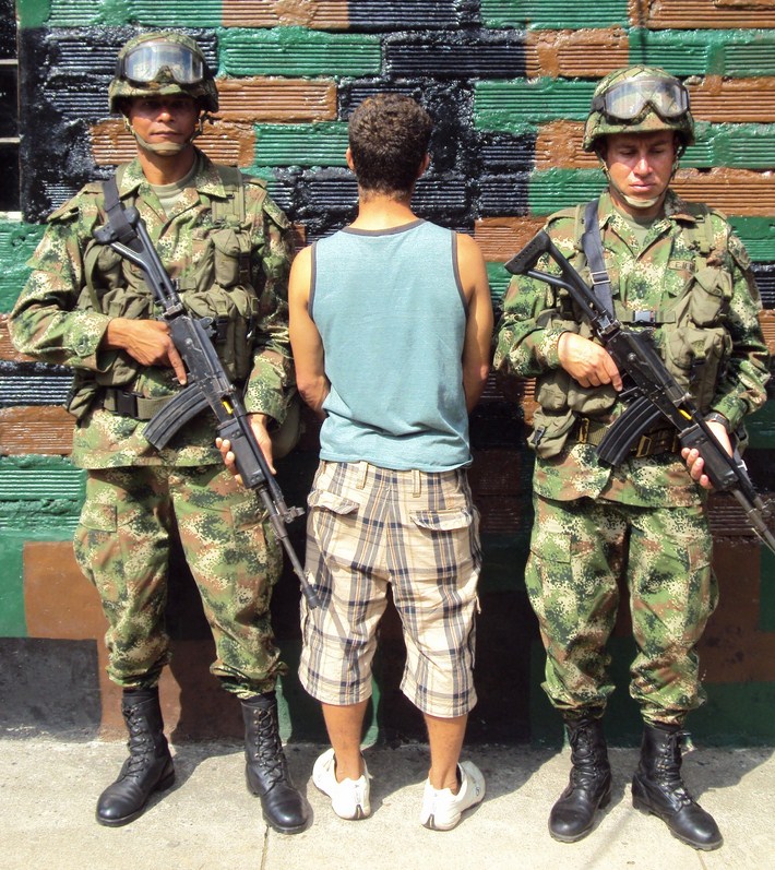 Así mismo, unidades del mismo Batallón de Ingenieros No. 4 capturaron a dos individuos de 19 y 20 años de edad cuando tenían en su poder dos armas cortas (una de ellas de fabricación artesanal) en el barrio El Salado del municipio de Girardota, norte del Valle de Aburrá durante una operación de control territorial en unidades motorizadas.