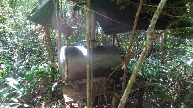 Fueron destruidos 550 litros de base de coca líquida, solución lista para sacar clorhidrato de cocaína, 200 kilos de metalsulfito de potasio, 85 galones de gasolina, 180 galones de acetona, entre otros materiales.