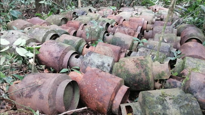En zona rural del municipio de Miraflores, Guaviare, soldados destruyeron una fábrica clandestina de explosivos perteneciente al GAO-r Estructura Primera, que contenía 1.080 kilogramos de explosivos cargados en más de 72 cilindros, de 25 libras de capacidad cada uno.