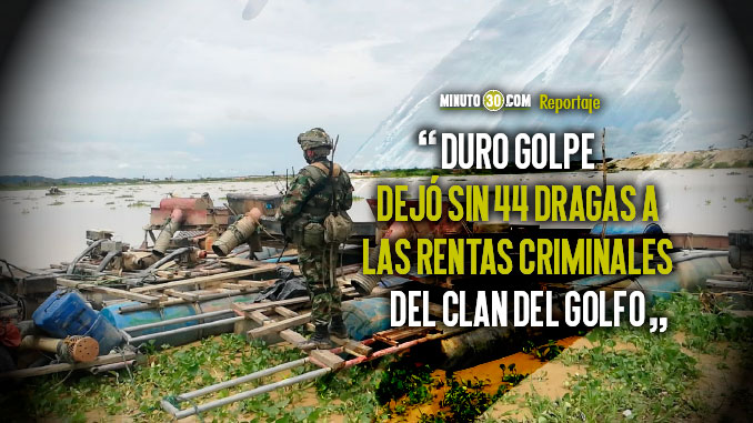 En las últimas horas las autoridades lograron neutralizar 44 dragas utilizadas para minería ilegal en el Bajo Cauca antioqueño, un contundente resultado en contra de las rentas criminales del Clan del Golfo.