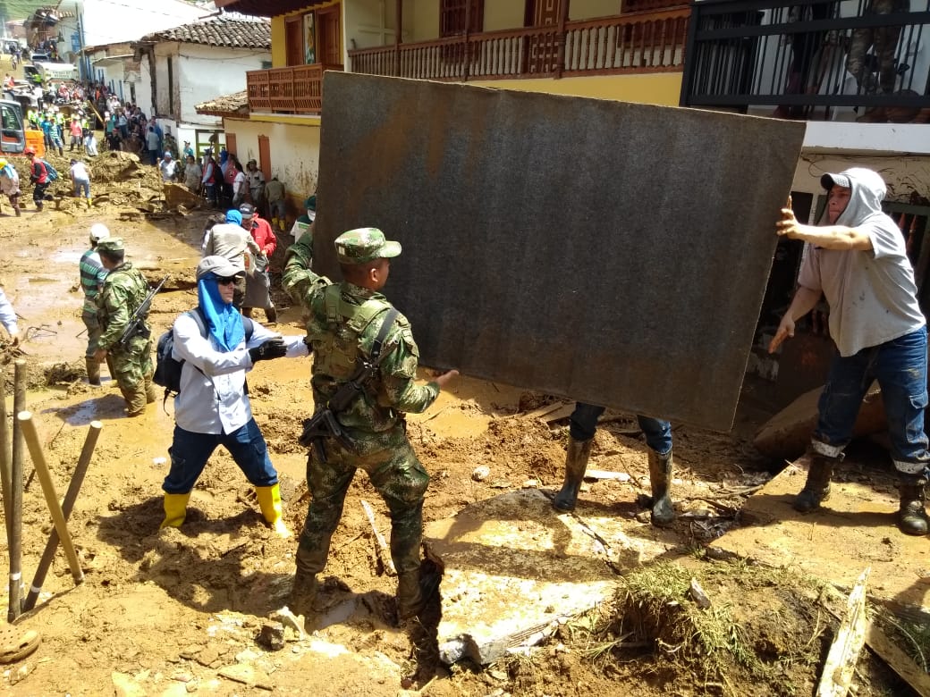 En este momento, tropas del Ejército con su Pelotón de atención y prevención de desastres del Batallón Ingeniero No.4 General Pedro Nel Ospina aunado a tropas del Batallón de Infantería Cacique Nutibara, se encuentran en el sitio de emergencia atendiendo las diversas necesidades de la población afectada.