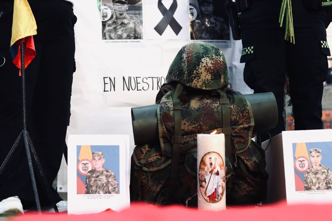 Por eso, a través de un acto simbólico se le rindió homenaje a nuestros militares caídos y los asistentes al evento elevaron oraciones con el fin de agradecerle a los hombres y mujeres del Ejército Nacional el ímpetu con el cual defienden la Patria, entregando, incluso, su propia vida.