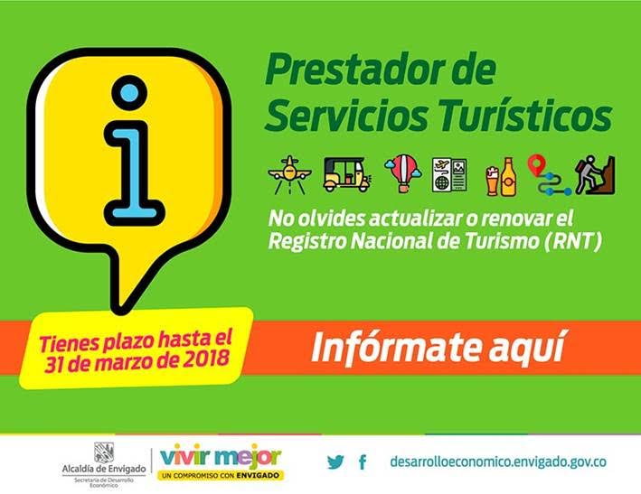 Los Prestadores de Servicios Turísticos del municipio de Envigado, tienen plazo hasta el próximo 31 de marzo para actualizar el Registro Nacional de Turismo (RNT).