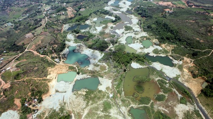 Vista aérea de una mina ilegal de oro ubicada en la zona rural de Santander
