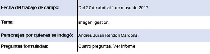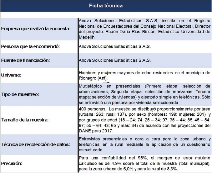 El alcalde de Rionegro, Andrés Julián Rendón, posee una imagen favorable entre el 72.5% de los habitantes de ese municipio. De los consultados, el 15% aseguró tener una imagen negativa del mandatario, mientras el resto aseguró que no lo conoce o no tiene una opinión sobre él.