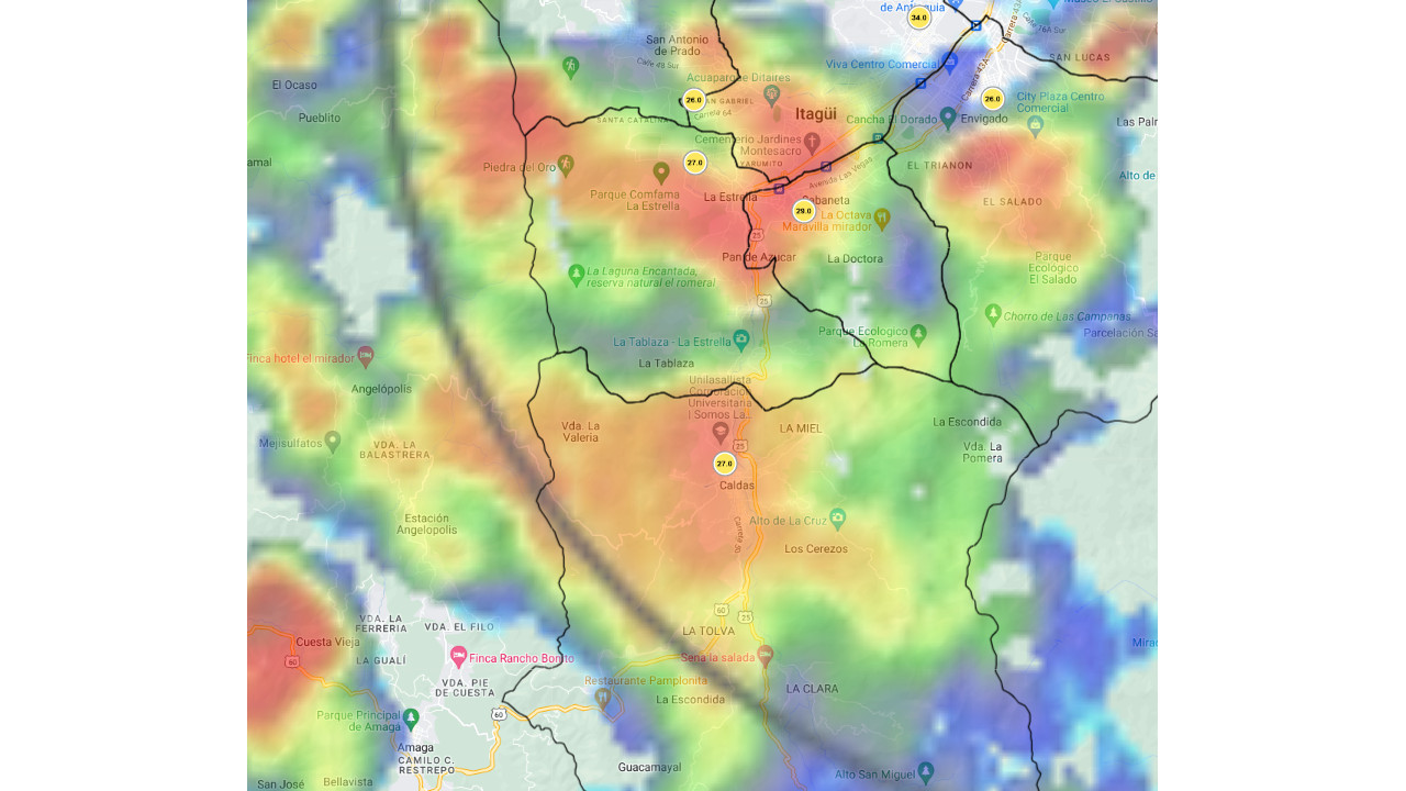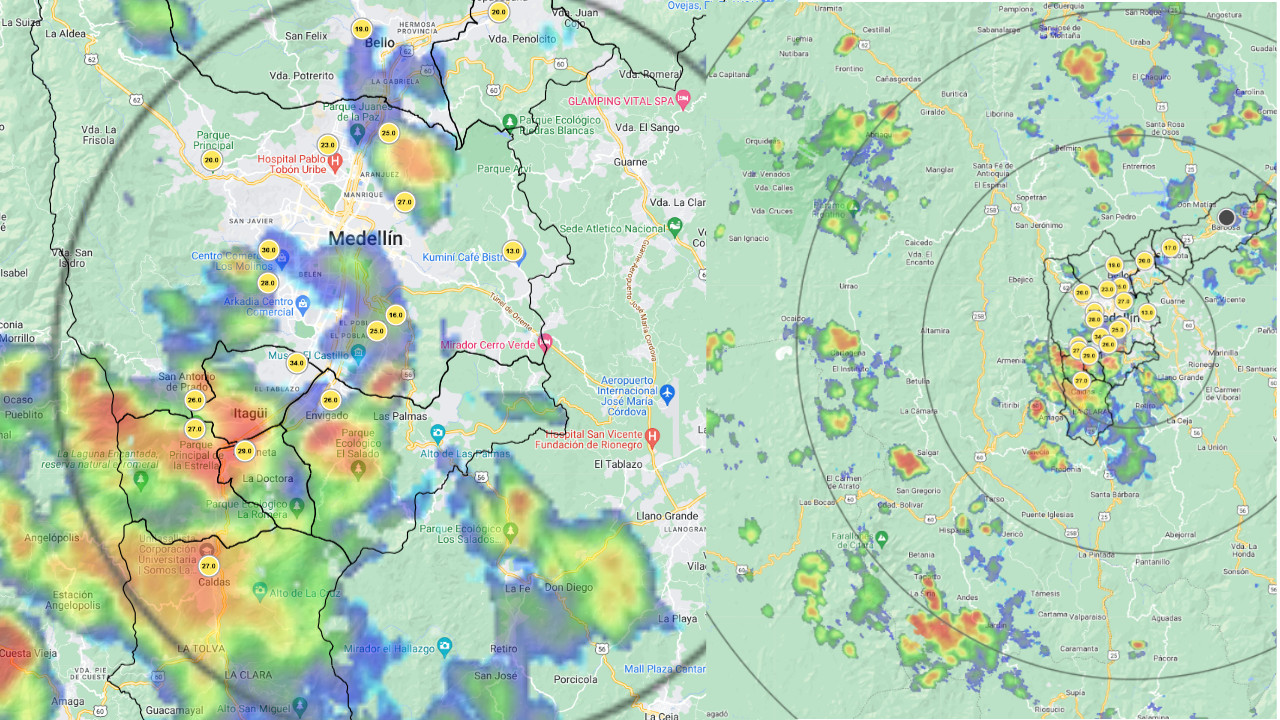 De acuerdo con el reporte del Sistema de Alerta Temprana de Medellín y el Valle de Aburrá, a las 12:53 se registraban precipitaciones de alta intensidad sobre el oriente de Caldas y sobre Barbosa.