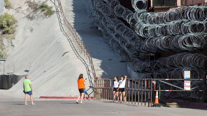 El alambre de cuchillas que el presidente de Estados Unidos, Donald Trump, mandó instalar en la frontera con México es todo un atractivo turístico para cientos de personas que parecen dar la razón al mandatario cuando dijo que la concertina puede suponer una “vista hermosa” o, al menos, curiosa.