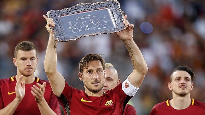 El veterano futbolista italiano es la “bandera” (como así se denomina en Italia al jugador santo y seña del club) del Roma, y se despedía entre lágrimas de su afición con un palmarés formado por un scudetto (campeonato liguero), dos Copas de Italia y dos Supercopas Italiana.