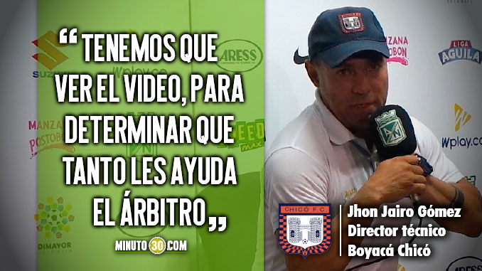 Minuto30.com- El director técnico de Boyacá Chicó, Jhon Jairo Gómez, sugirió que el arbitraje había favorecido a Atlético Nacional, en el partido de la fecha 12 de la Liga Águila II-2018, que se cumplió el domingo anterior en el Estadio Atanasio Girardot.
