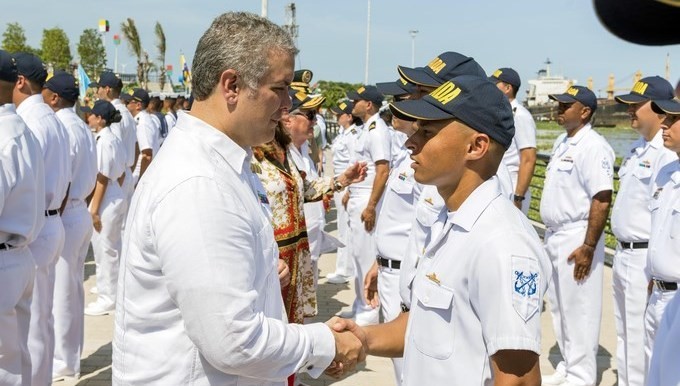 Durante la ceremonia, a la que también asistieron la vicepresidenta Ramírez y el ministro de Defensa, Guillermo Botero, Duque condecoró a oficiales de la Armada activos y retirados.