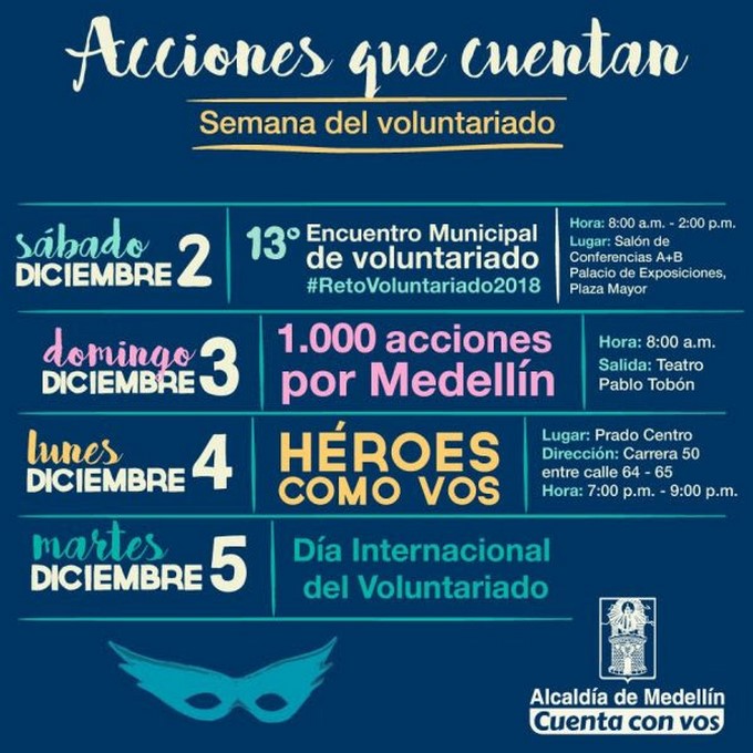 III Concurso de Bandas – Medellín Marcha Musical, Entre Cuerdas y Acordeones y Acciones que cuentan en la Semana del Voluntariado.