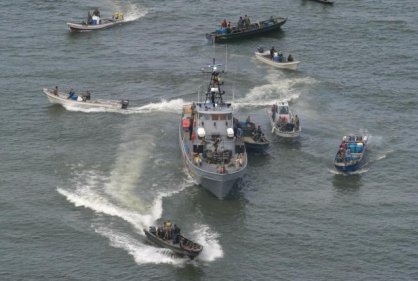 Ante la flagrante intención de violar la soberanía colombiana, un buque de la Armada República de Colombia le exigió a la embarcación nicaragüense abandonar el territorio marítimo colombiano; sin embargo se ha negado a atender el llamado, aduciendo recibir claras instrucciones del Gobierno de Nicaragua para continuar con su propósito y seguir su rumbo.