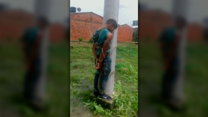 Fue el caso de un joven que en menos de 24 horas cometió tres hurtos, al ser atrapado por los vecinos, estos decidieron darle una lección así que lo amarraron fuertemente a un poste de energía y ahí lo dejaron a la intemperie y a la vista de todos.