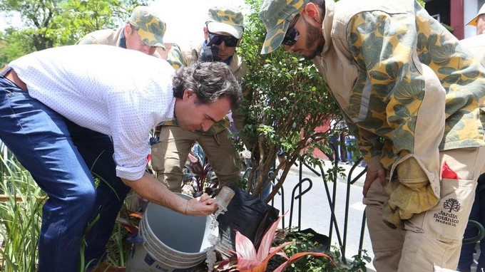 Con la siembra de un guayabo en el separador central de la calle 57 (Argentina), el alcalde de Medellín, Federico Gutiérrez Zuluaga, le entregó a la ciudad este nuevo Corredor Verde que embellece el espacio público en el Centro y contribuye con el mejoramiento del medio ambiente.