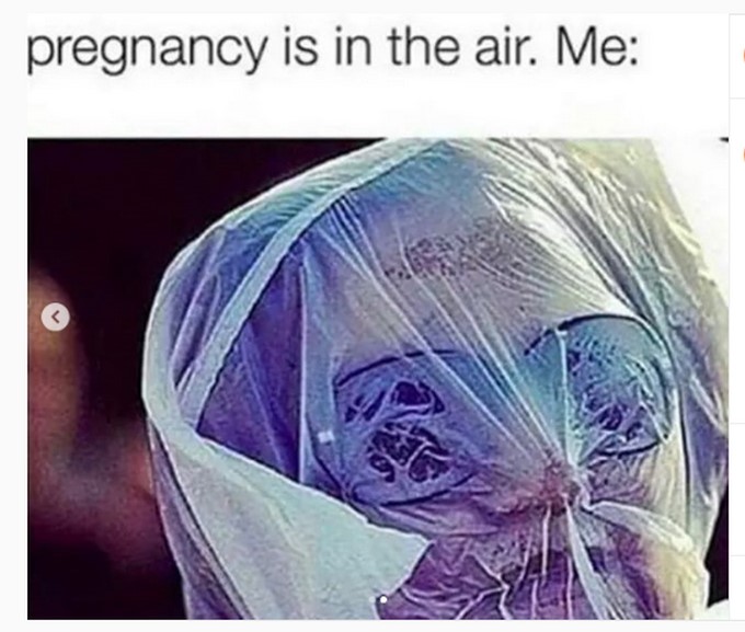 Pero lo que se robó el show fue una foto de un meme donde dice que “el embarazo está en el aire” y una mujer con una bolsa en la cara.