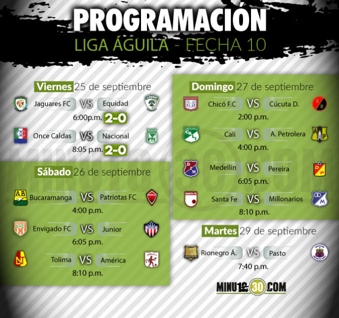 Minuto30.com- Con dos partidos se abrió el viernes la programación de la fecha 10 de la Liga BetPlay I-2020, que tendrá agenda sábado y domingo, y que concluirá el martes.