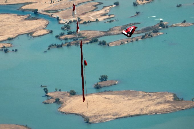 En una prueba disputada a gran altura y a alta velocidad en la que los participantes debían cruzar cuatro puertas, la acción empezaba con un salto desde un avión situado a 2.130 metros de altura que, tras cruzar las distintas puertas del recorrido, terminaba a poco más de 1.000.