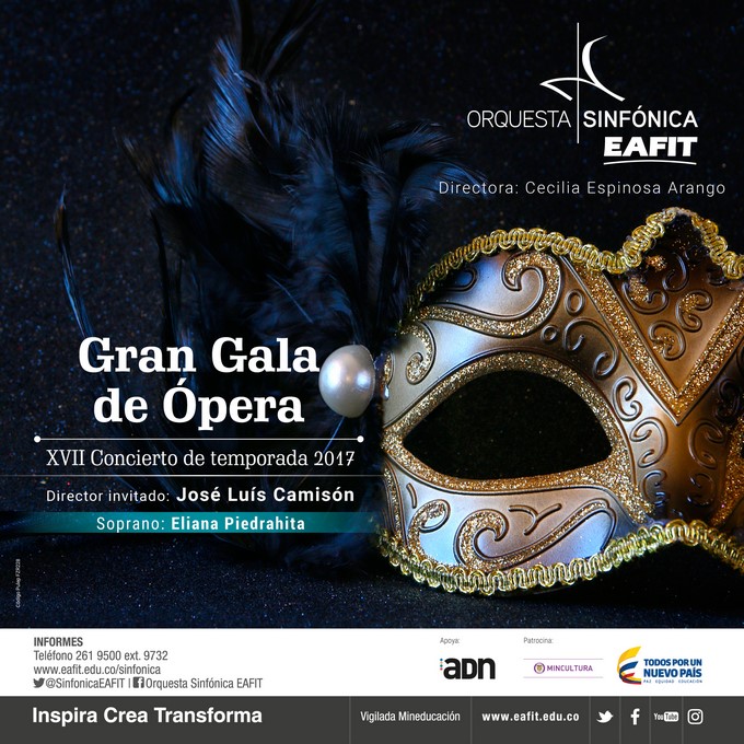 Minuto30.com-. El concierto temporada de noche lírica, “Gran Gala de Ópera” se realizará con la soprano Eliana Piedrahita y el director invitado José Luís Camisón el próximo jueves 19 de octubre.