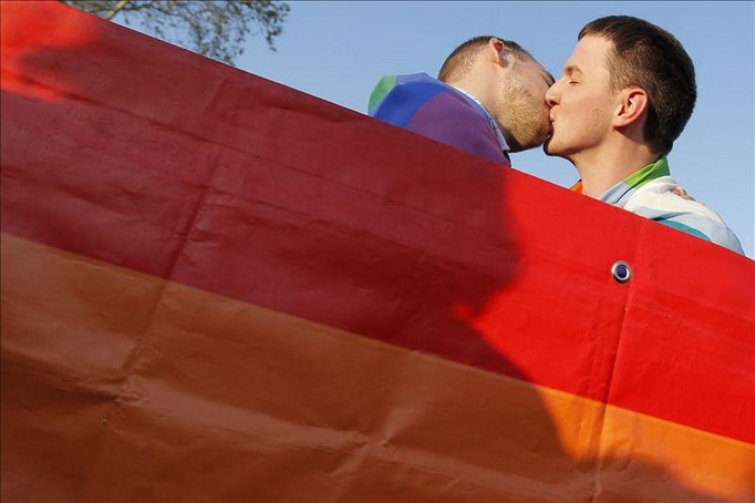 Dos homosexuales se besan tras la aprobación de la ley que autoriza el matrimonio entre personas del mismo sexo. EFE/Archivo