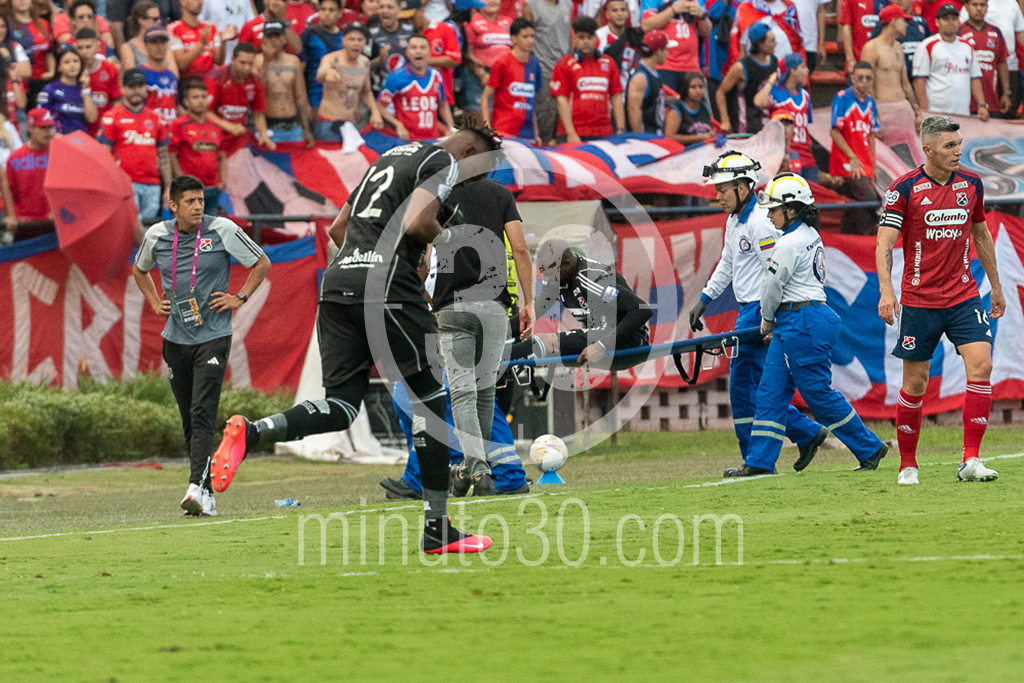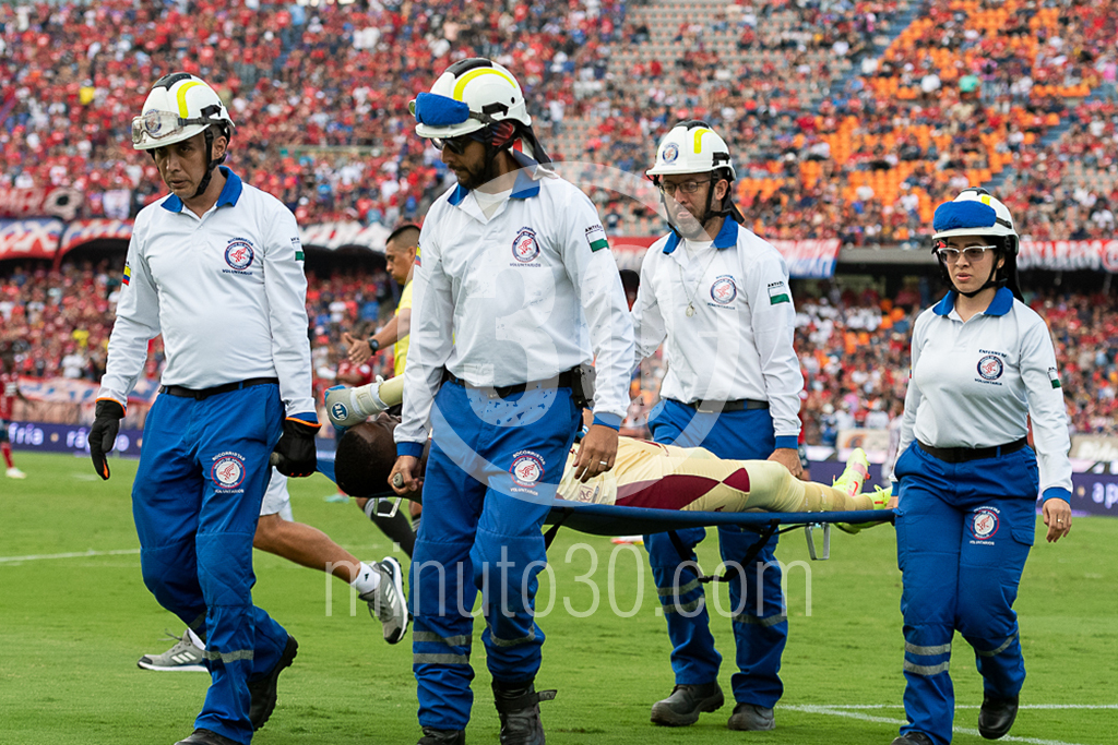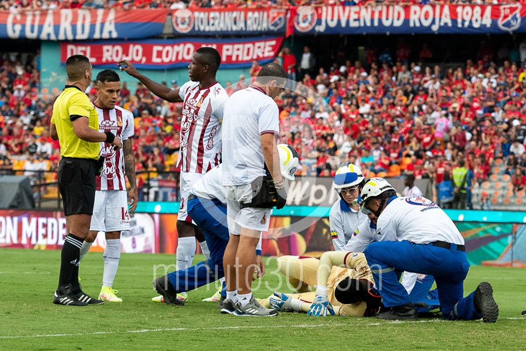Fue en esa misma jugada en la que el guardameta ‘Poderoso’ se quedó en el suelo con evidentes muestras de dolor, pidiendo la asistencia médica y tras una primera revisión el DIM tuvo que sacar a su portero.