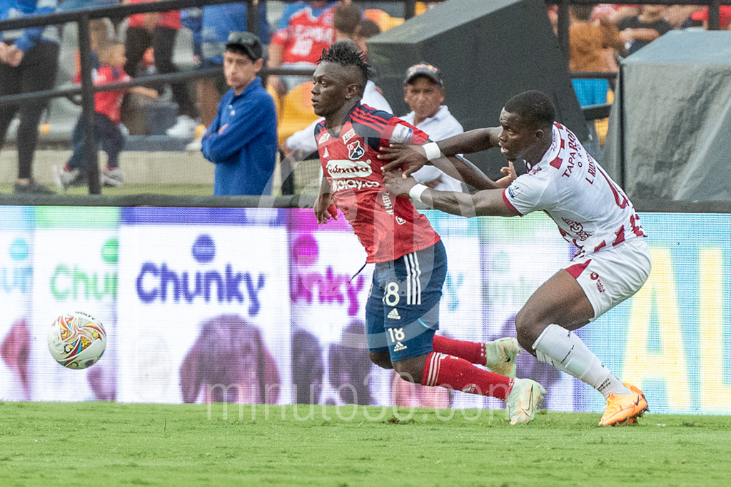 El empate del DIM llegó por intermedio de Daniel Londoño al minuto 45+5 del primer tiempo, tras un soberbio pase de Daniel Torres, la figura del partido.