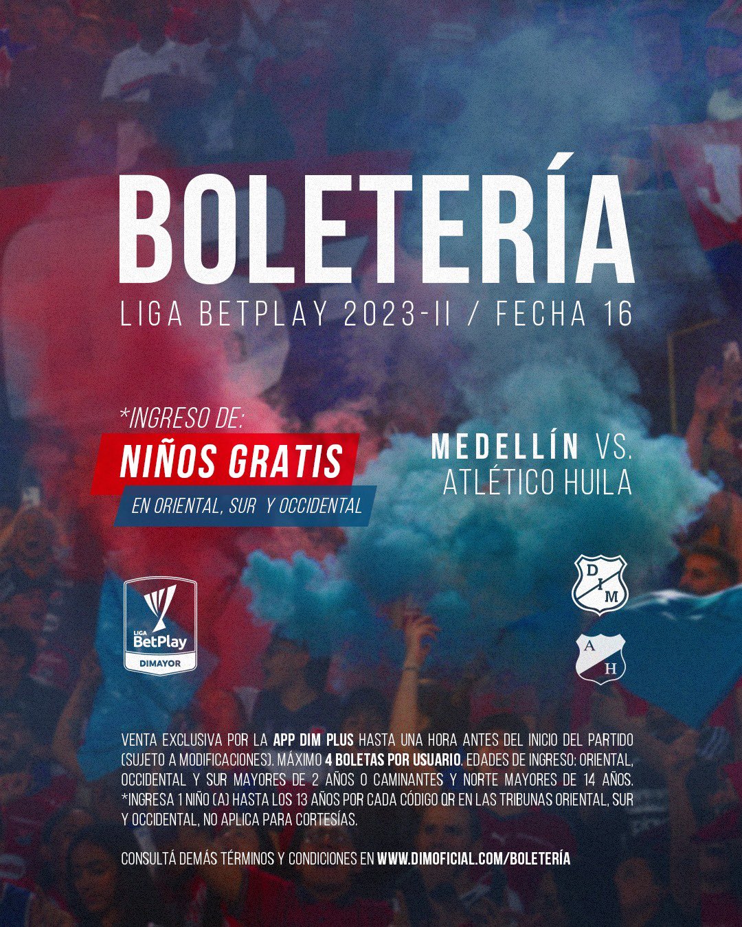 La promoción solo aplica para las tribunas oriental, occidental y sur. Así mismo destacó que aplica para abonados y boleta suelta y no aplica para las cortesías.