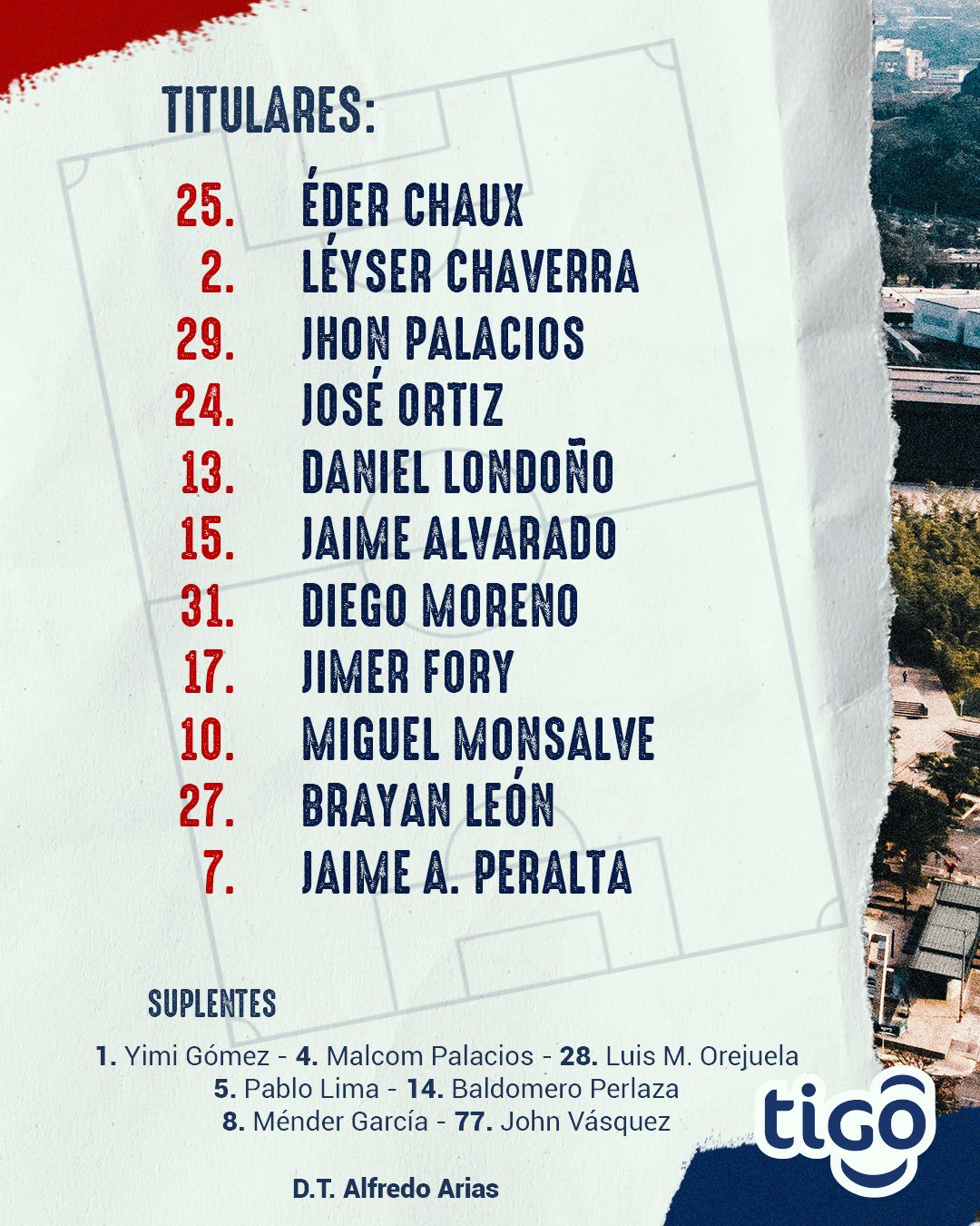 Así mismo también serán titulares José Ortiz, Daniel Londoño, Jaime Alvarado, Diego Moreno, Jimer Fory, Miguel Monsalve, Brayan León y Jaime Peralta.