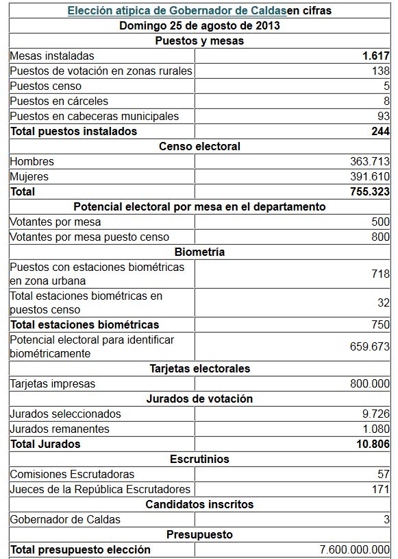 Registraduría Nacional del Estado Civil prevé que a las 5:30 pm del próximo domingo 25 de agosto los caldenses conocerán el 95% de los resultados de preconteo la elección atípica de gobernador de Caldas