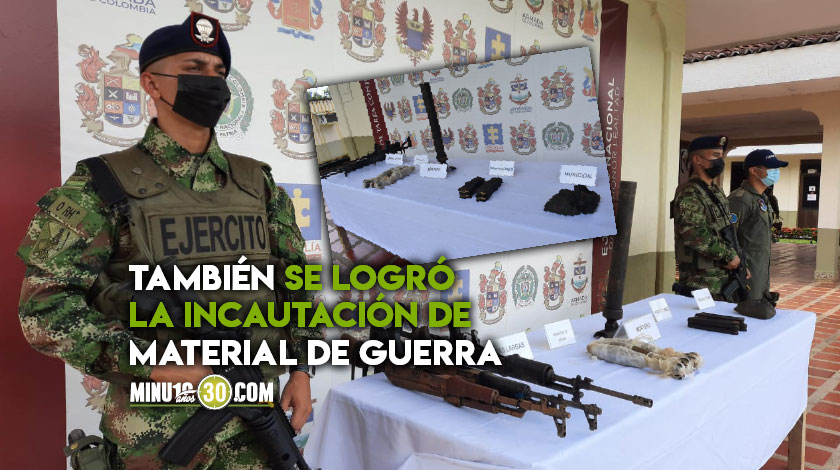 Durante la operación militar también se logró la incautación de tres armas largas, tipo fusil; un mortero con tres granadas, material de intendencia y comunicaciones. Luego de acompañar el proceso de actos urgentes, los cuerpos fueron entregados a las autoridades judiciales competentes para su proceso de identificación.