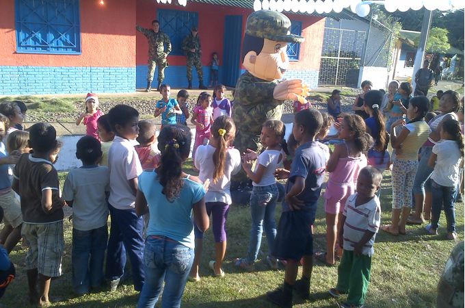 La Fuerza de Tarea Nudo del Paramillo orgánica de la Séptima División les llevó, la novena de navidad, juguetes, payasos y brinki brinki a los niños de las veredas más necesitadas de su jurisdicción.