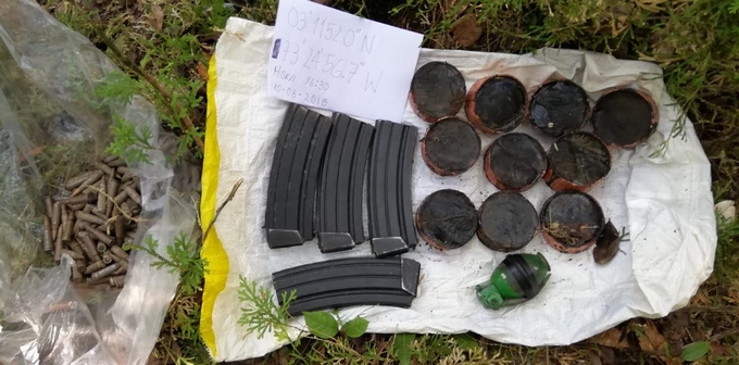 En el lugar se encontraron 10 minas antipersonal, una granada de mano, 205 cartuchos de AK47 y cuatro proveedores para fusil.