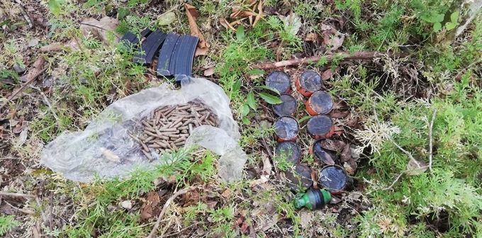 En el lugar se encontraron 10 minas antipersonal, una granada de mano, 205 cartuchos de AK47 y cuatro proveedores para fusil.