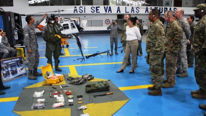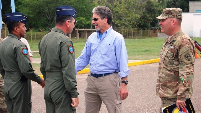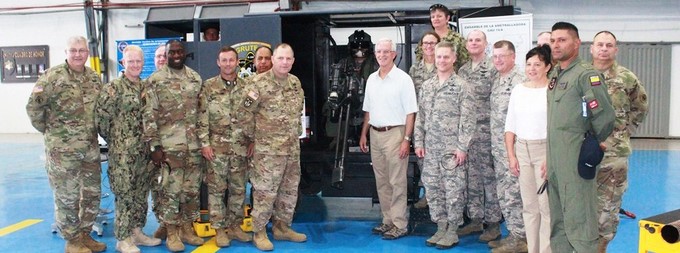El embajador de los Estados Unidos en Colombia, Kevin Whitaker, con un grupo de generales de las Fuerzas Militares Estadounidenses, visitó el Comando Aéreo de Combate N° 4 de la Fuerza Aérea Colombiana.