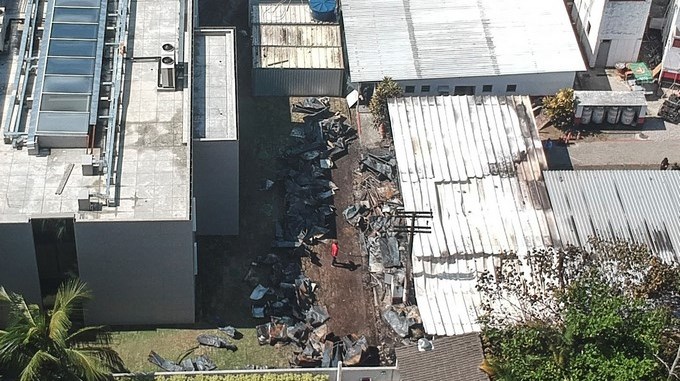 Vista aérea desde un dron que muestra los estragos del incendio registrado en la madrugada de este viernes/EFE