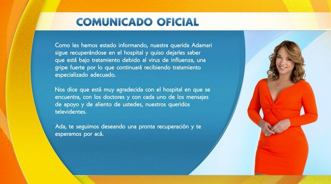 Durante el programa matutino, se volvió a actualizar la información sobre el estado de salud de la presentadora, y confirmaron que padece influenza.