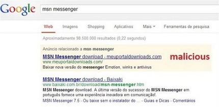 Los expertos de Kaspersky Lab han comprobado que al realizar una búsqueda en Google en algunos territorios, como en Portugal, de los términos MSN Messenger, el primer resultado que aparece es un enlace a un dominio malicioso que distribuye un falso instalador que en realidad el archivo descargado esconde un troyano bancario.