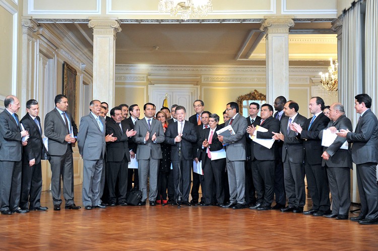 Minuto30.com .- El Presidente Juan Manuel Santos aseguró este lunes, al finalizar la primera Cumbre de Gobernadores del año, que los dirigentes de los departamentos tienen garantizado el 60 por ciento de los recursos provenientes de regalías y que por esta razón, podrán iniciar de manera inmediata su contratación