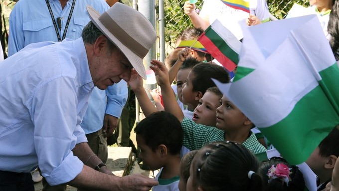 En la imagen, el presidente de Colombia, Juan Manuel Santos, saluda a unos niños. EFE/Archivo