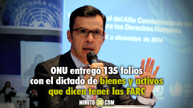 “Ayer, el delegado de la misión de la ONU Antonio Menéndez me entregó 135 folios con el dictado de bienes y activos que dicen tener las FARC”, dijo Rivera en una rueda de prensa.