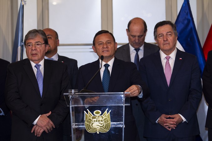 “La declaración adoptada esta mañana por el Grupo de Lima tiene un mensaje político contundente, donde el principal es el no reconocimiento de la legitimidad del nuevo periodo del régimen venezolano”, apuntó el canciller peruano, Néstor Popolizio, quien encabezó la reunión.