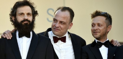 El actor húngaro Geza Rohrig (i), el actor alemán Urs Rechn (c) y el actor húngaro Levente Molnar (d) posan antes de la proyección de la película “Saul Fia” (el hijo de Saul) en la 68 edición del Festival de Cine de Cannes (Francia) hoy. EFE