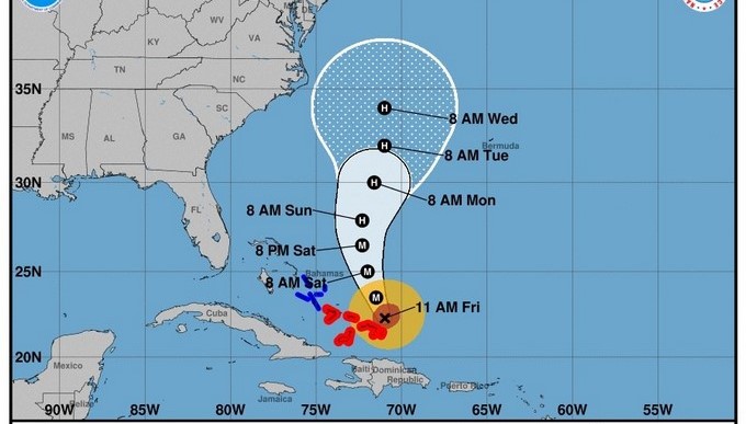 El Centro Nacional de Huracanes (NHC) de EE.UU., con sede en Miami, indicó que aunque María se debilitará en las próximas 48 horas según se vaya alejando de las Islas Turcas y Caicos y Bahamas, golpeará con dureza estos archipiélagos.