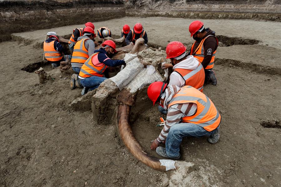 El rico yacimiento de fósiles se ubica a unos 50 kilómetros de la capital mexicana, en los terrenos del Aeropuerto Internacional Felipe Ángeles, que se construye en la base militar de Santa Lucía por orden del presidente Andrés Manuel López Obrador.