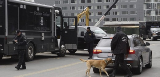Agentes de policía de Boston inspeccionan varios vehículos a las puertas de la corte federal Joseph Moakley.