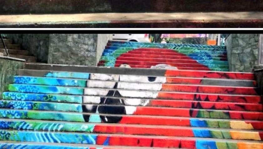 Hasta las escaleras que están ubicados en ese popular sector llegaron miembros de EMVARIAS y realizaron un lavado total que dejó ver otra vez al loro que en multicolor se veía hacia algunos años.