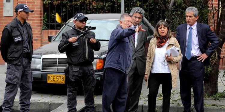 Fotografía de archivo fechada 28 de mayo de 2019 que muestra miembros del Cuerpo Técnico de Investigación (CTI) de la Fiscalía de Colombia mientras trabajan en la reconstrucción del crimen del excandidato presidencial Álvaro Gómez Hurtado perpetrado en 1995, en Bogotá (Colombia). EFE/Leonardo Muñoz /Archivo
