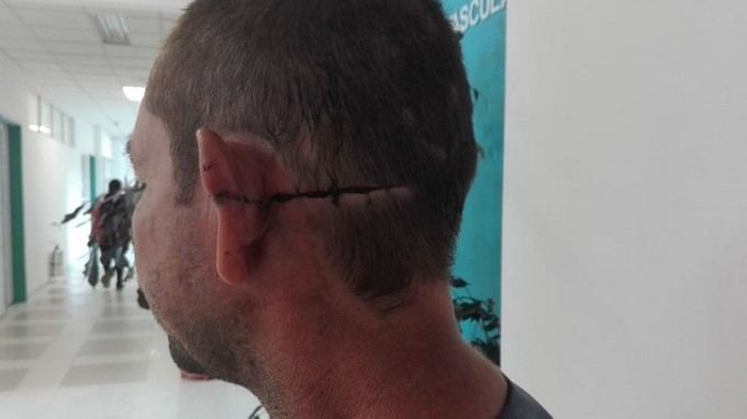 La víctima fue traslada a un centro médico donde los doctores indicaron que presentó una herida en la cabeza de más o menos de 10 centímetros de longitud, además de tener lesionada la sección completa del cartílago de la oreja izquierda.