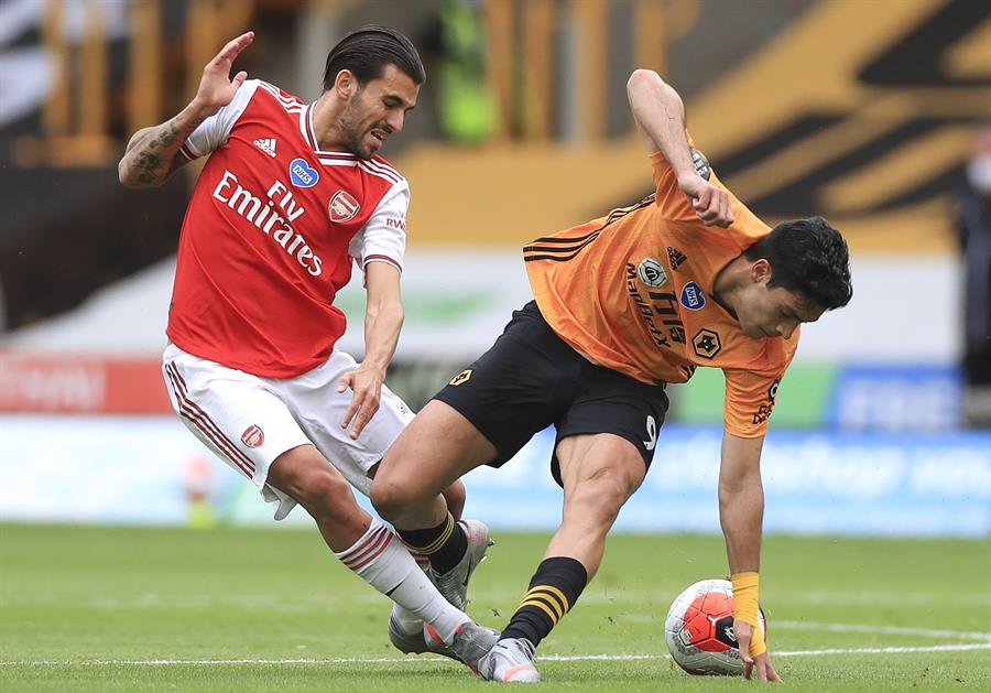 El delantero azteca formó arriba junto a Adama Traoré, con el que compone una de las mejores duplas de la Premier League, pero la defensa de cinco que plantó el Arsenal frenó las intenciones de Jiménez.
