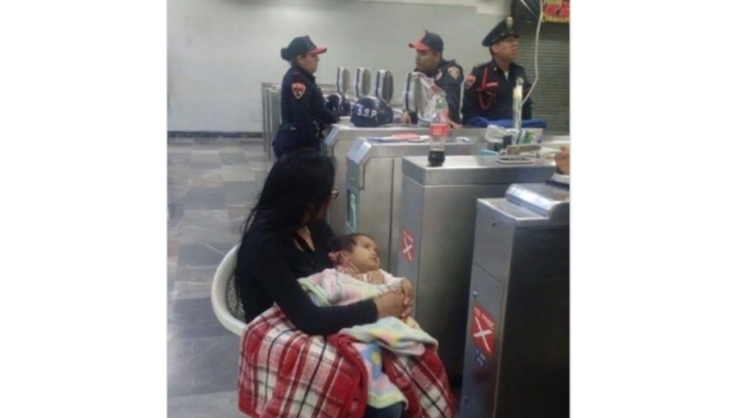 Más de 400 veces fue compartida la imagen publicada por un grupo de denuncias en redes sociales en la que se ve a una mujer y a un bebé esperando en una estación de metro de Ciudad de México.