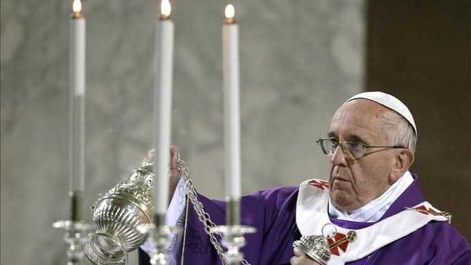El papa Francisco presidió hoy la tradicional procesión penitencial que abre los ritos litúrgicos de la Cuaresma y ofició la misa del Miércoles de Ceniza por primera vez desde que fuera elegido pontífice hace un año.